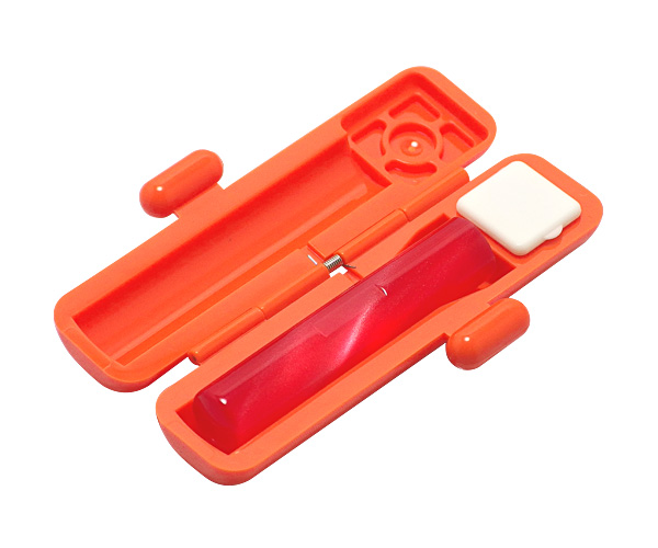 卒業記念品用のプラスチック製印鑑ケースです。お手頃価格ながら朱肉も内蔵されており機能的。