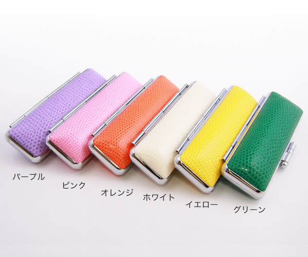 合成皮革の表面に高級感のあるトカゲ皮模様を型押しした、人気の印鑑ケースです。明るい色合いの6色からお選び頂け、表面の色合いに合わせて裏地にもこだわった丁寧な仕上がりです。水牛などの本格印材からカラフルなアクリル印材まで、幅広く合わせやすい商品です。