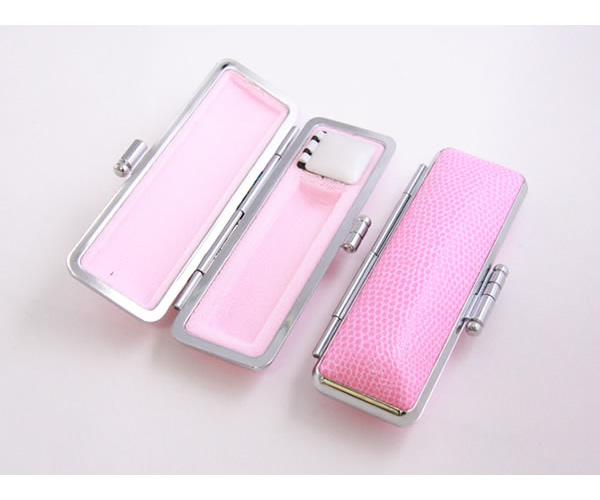 平たい形状で使い勝手が良く、卒業記念品だけでなく企業のノベルティなどにも人気の印鑑ケースです。